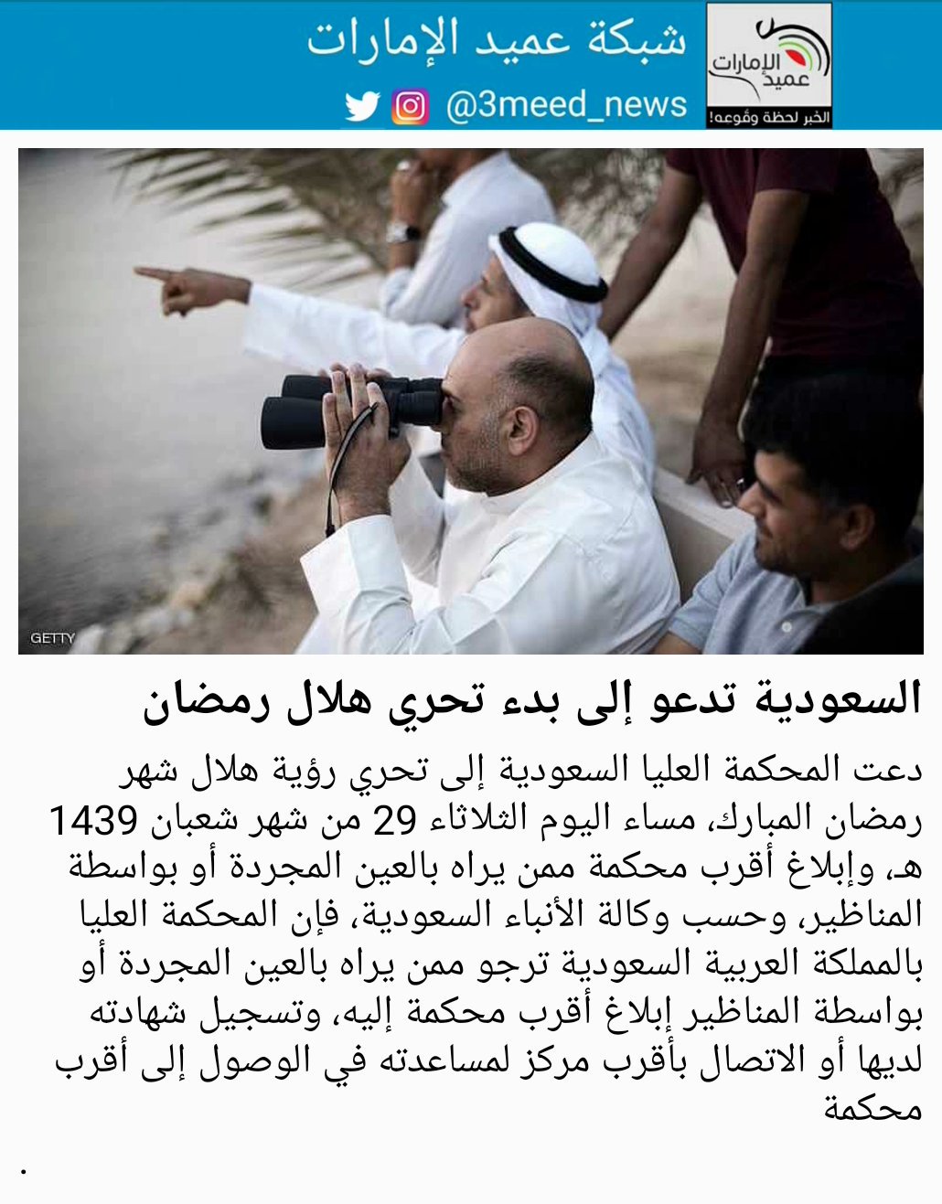المحكمة العليا بالسعودية تحدد موعد تحري رؤية هلال رمضان Aajill Com عاجل الان